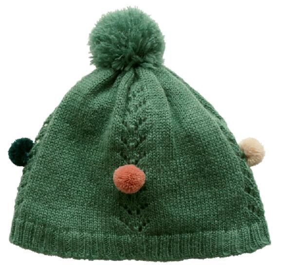 ポンポン付きファンシーニットハット